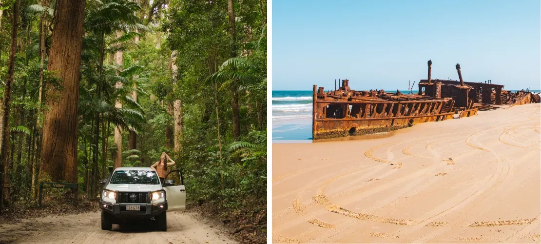 For thrill-seekers, K’gari is a road-tripper’s dream. Tackle sandy inland tracks through lush rainforest or cruise along the iconic 75 Mile Beach highway, where the ocean rolls alongside your drive. From shipwrecks to headland lookouts, every stop along the way is a new adventure waiting to be discovered.