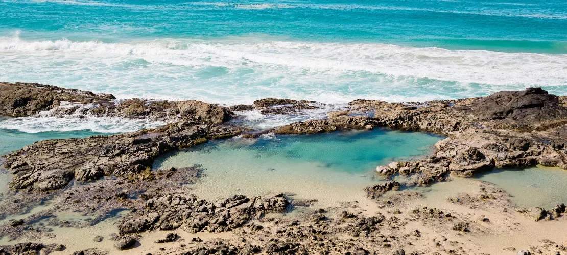 If you've got more time up your sleeve, travel up to the north-east coast and splash into the bubbly Champagne Pools, as waves crash over the volcanic rock - this natural jacuzzi is one of the most coveted spots on K'gari!