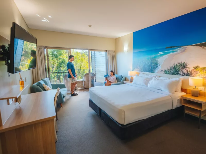 Imagine waking up to the gentle sounds of nature, drawing back the curtains, and gazing out over the calm, shimmering waters of the Great Sandy Strait. In our King Bay Resort Rooms, you’ll enjoy the perfect blend of comfort and breathtaking views – an idyllic escape for couples seeking tranquility on beautiful K'gari (Fraser Island).
